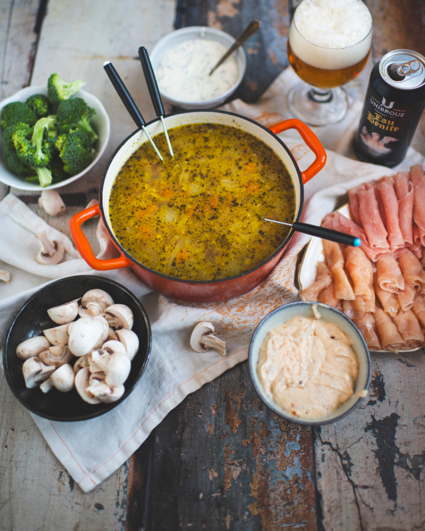 An aromatic and flavorful fondue broth, elevated by Eau Bénite beer, perfect for pairing with your white meats and seafood.