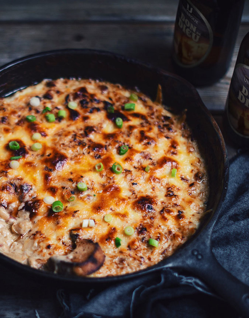 Cheesy dip with Don de Dieu beer and caramlized onions