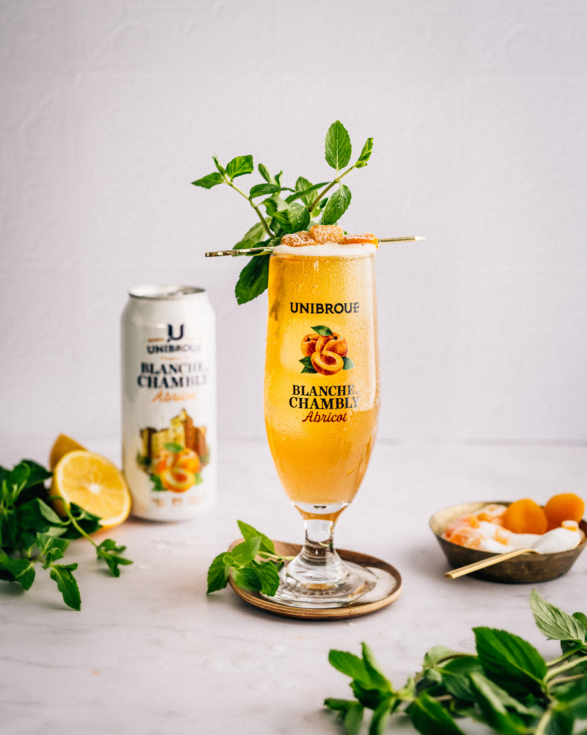 Une limonade à la bière Blanche de Chambly Abricot. Aussi simple que ça! Le parfait cocktail rafraîchissant à savourer tout l’été.