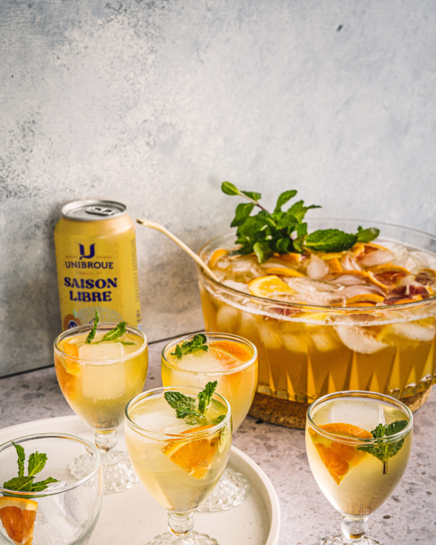 Mariez la Saison Libre à quelques ingrédients et rendez votre vie un peu plus tropicale… l’espace d’un cocktail! Vous n’avez qu’à multiplier la recette, idéal pour recevoir les convives à l’année!