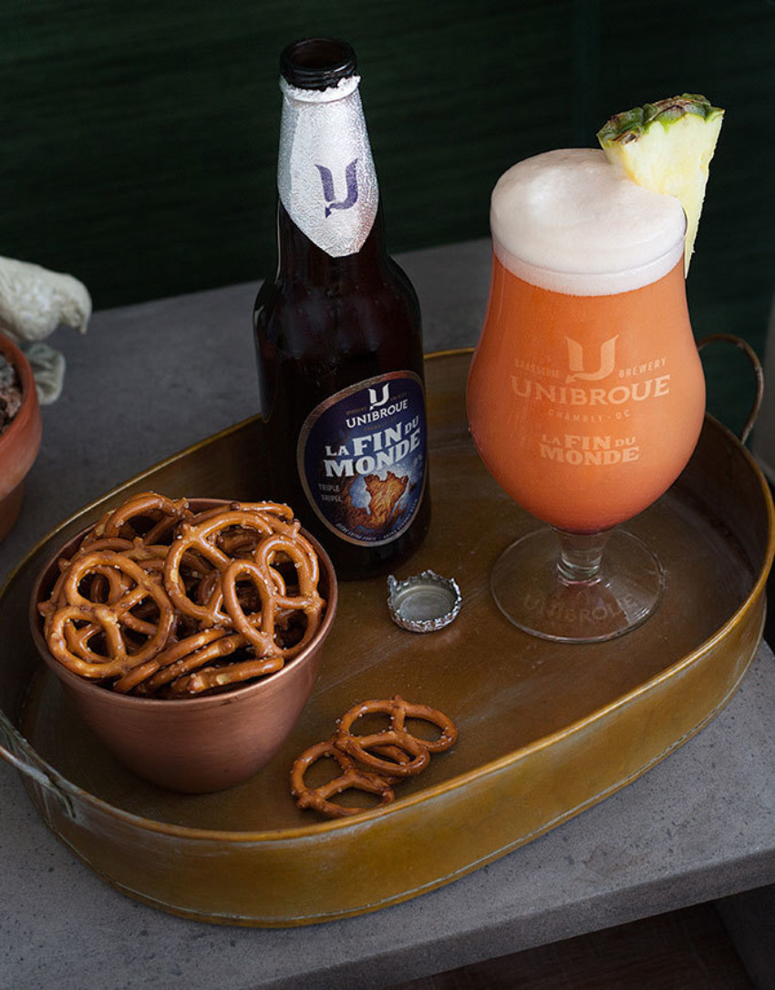This cocktail could also be called Fin du Monde Lemonade. It’s sweet, tropical, and the perfect thing for an afternoon poolside.