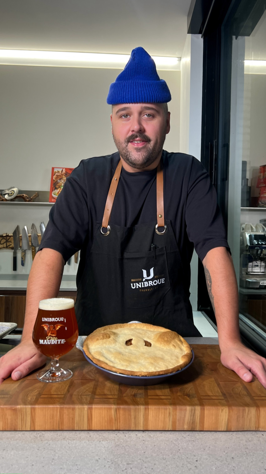 - Line two 23 cm (9") diameter pie dishes. Divide the meat between them. Cover with a second layer. Make a slice in the center. Seal pastry well, crushing edges with a fork or your fingers.