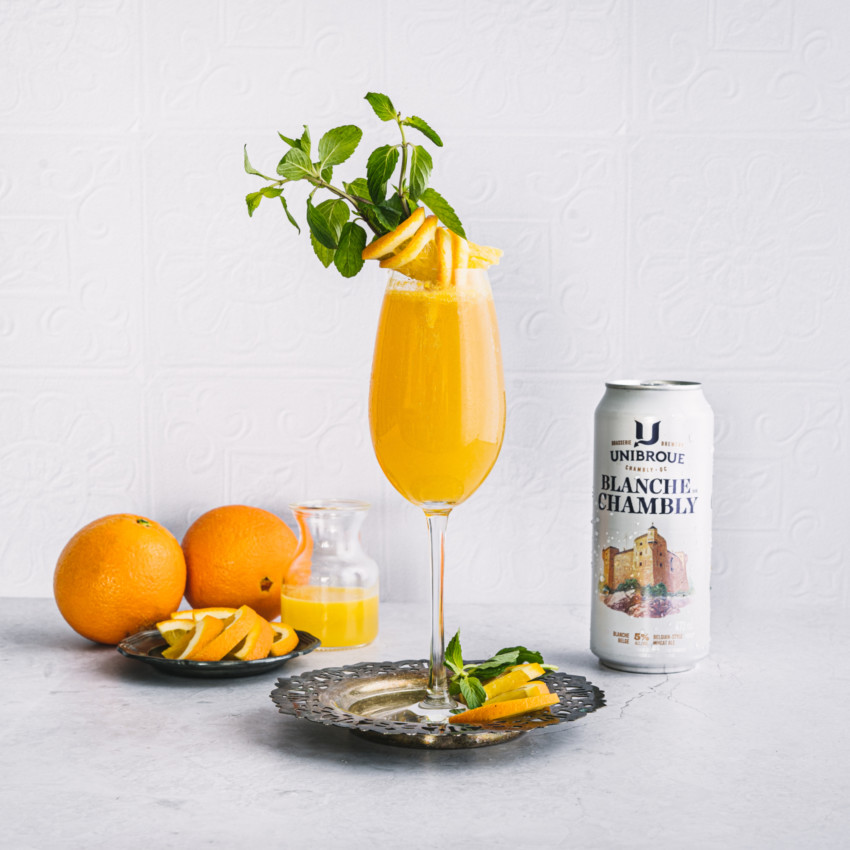 A mimosa made with Blanche de Chambly. Why not? This excellent cocktail goes perfectly with sunny Sunday brunches.