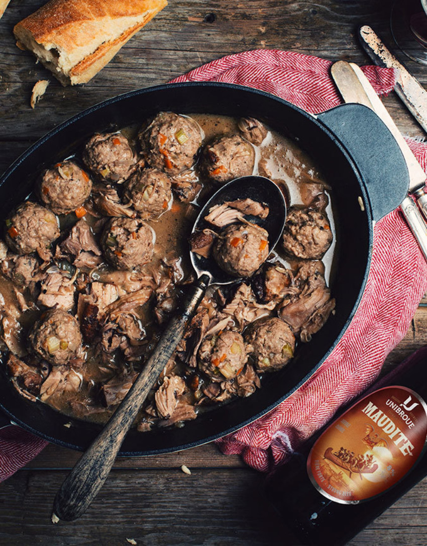 Looking for a traditional ragout recipe with a little something extra? This recipe has everything from your grandmother’s meatball stew, with Maudite sauce on top. Ideal for the holidays.